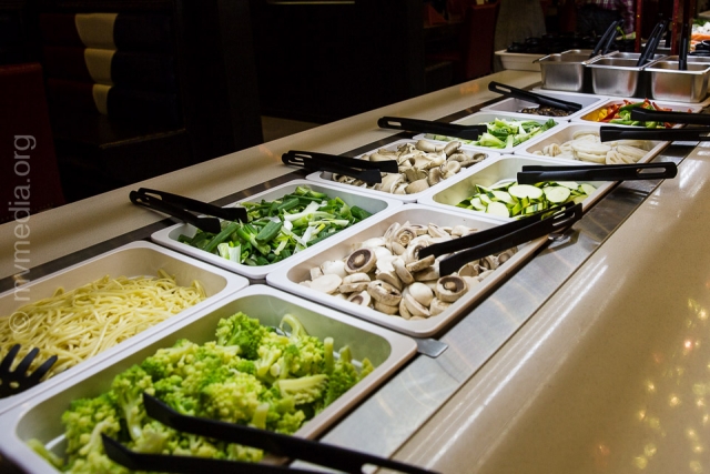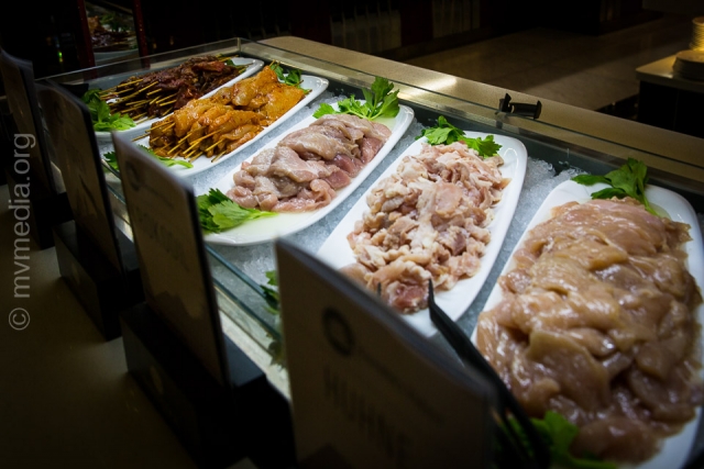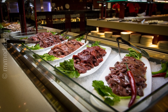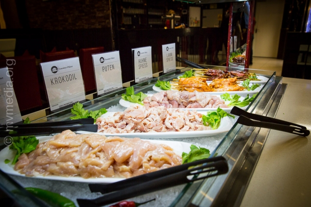 Als besonderen Highlights ist der mongolische Grill zu erwähnen, auf dem sich die Gäste ihr zuvor gewähltes Fleisch ganz gleich ob Hühnchen, Rind, Schwein oder Krokodilfleisch grillen, und dabei dem Koch über die Schulter sehen können.