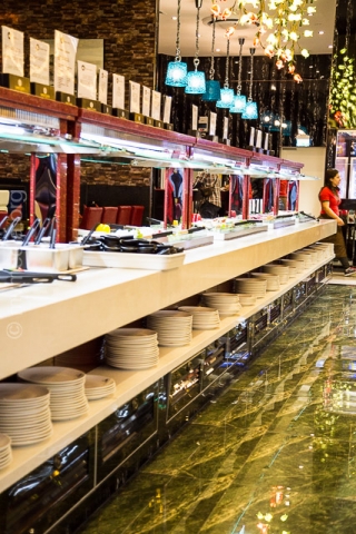 Circa 2000 qm kostenlose Parkplätze, 1000 qm Restaurantfläche, mit 400 Sitzplätzen und 120 laufende Meter Buffet, vollgepackt mit exotischen Gerichten, warm, kalter Speisen, Garnelen, Muscheln, Sushi, knackige Salate, frisches Obst bis hin zu ausgewählten Desserts werden mit 2 Schokoladenbrunnen weiß/braun, abgerundet