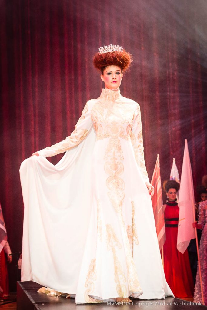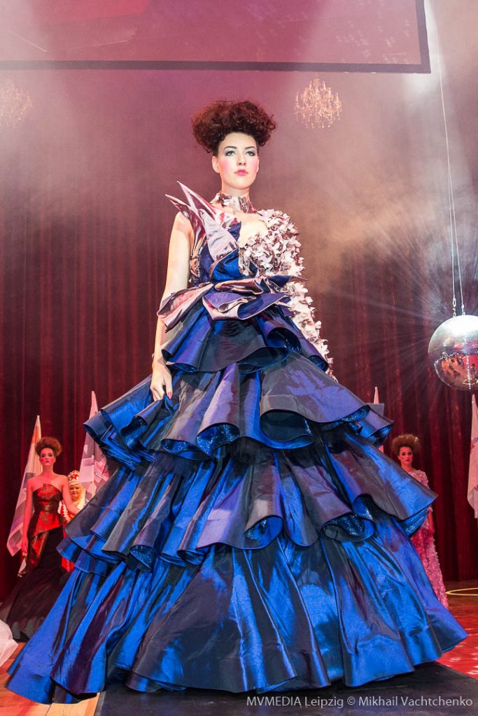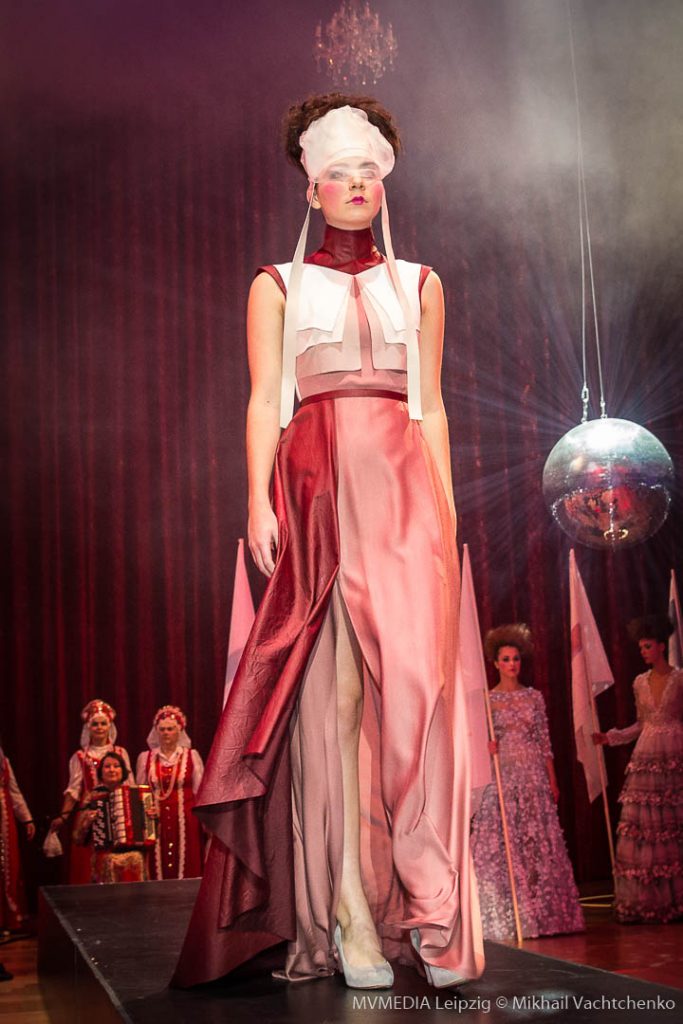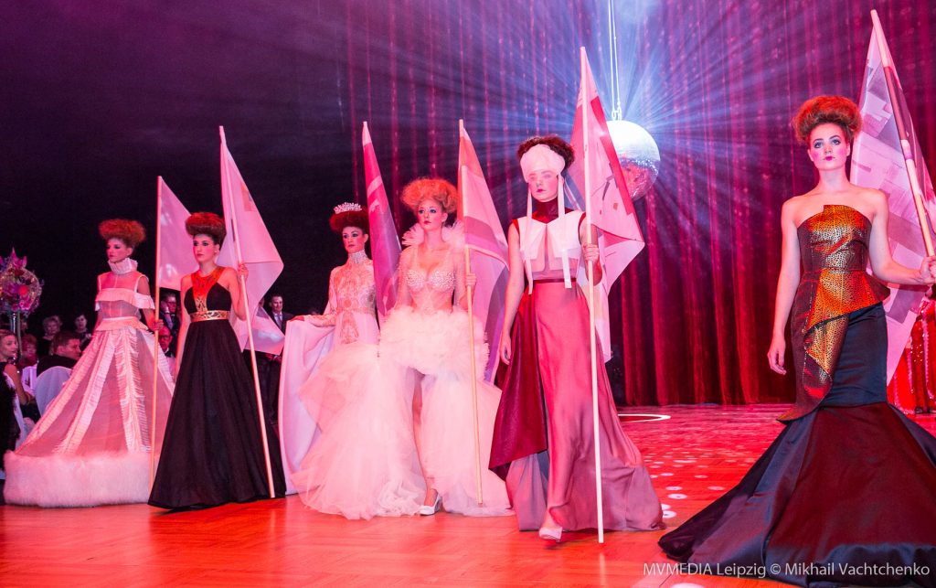 Ein wichtiger Bestandteil des Leipziger Opernballs war die Modeshow. Auch dieses Jahr defilierten im violetten Licht junge Models vor rund 2.000 Gästen und stellten originelle Outfits mit Elementen des russischen Stils vor.