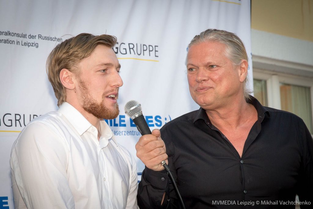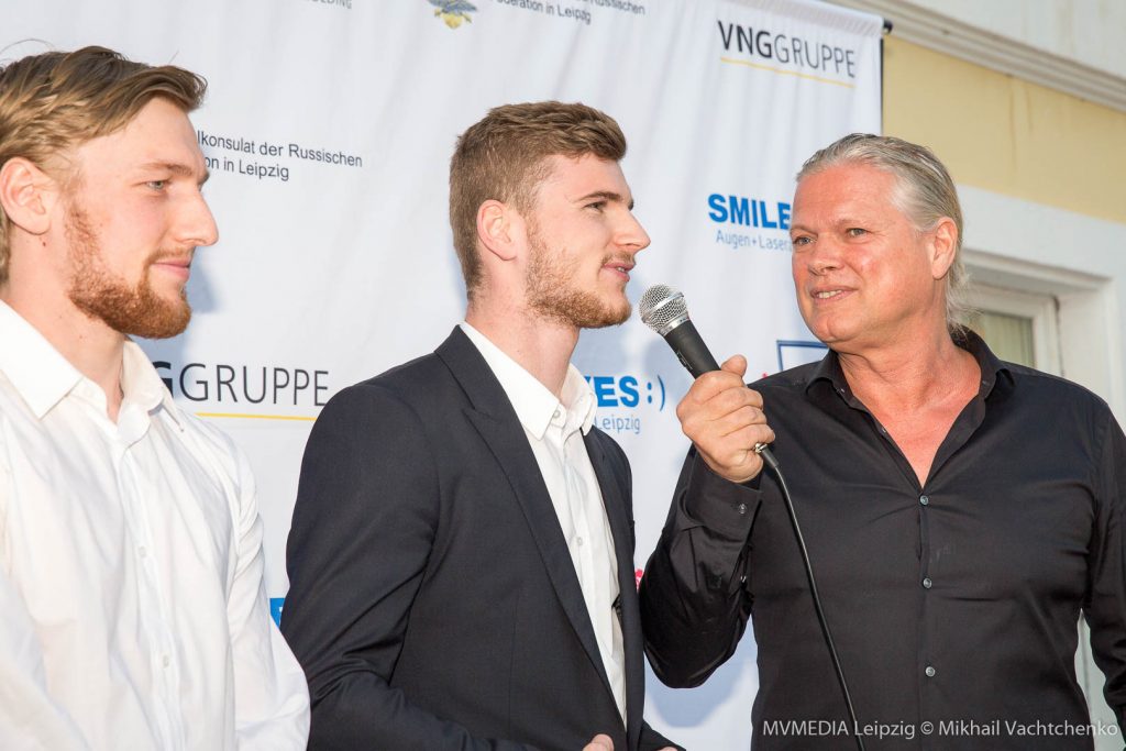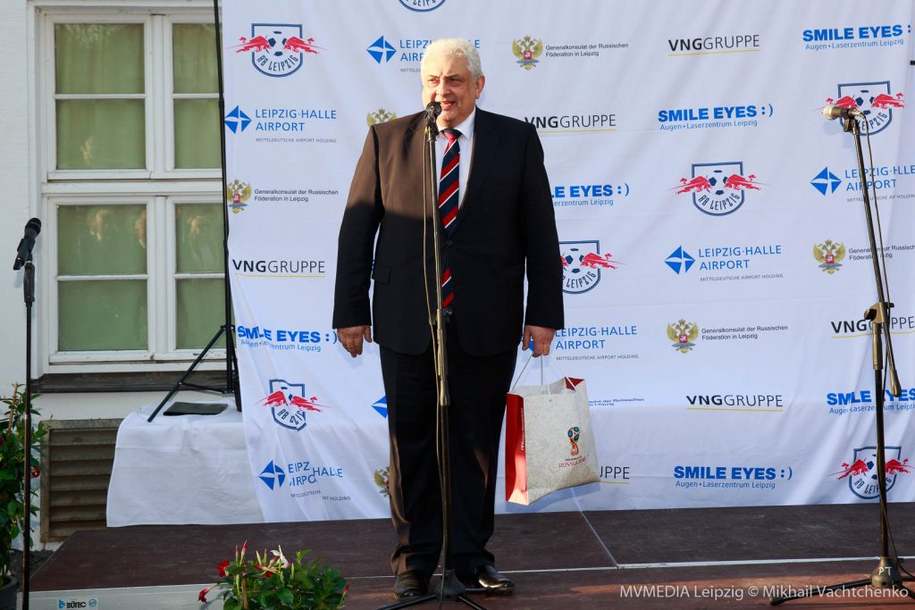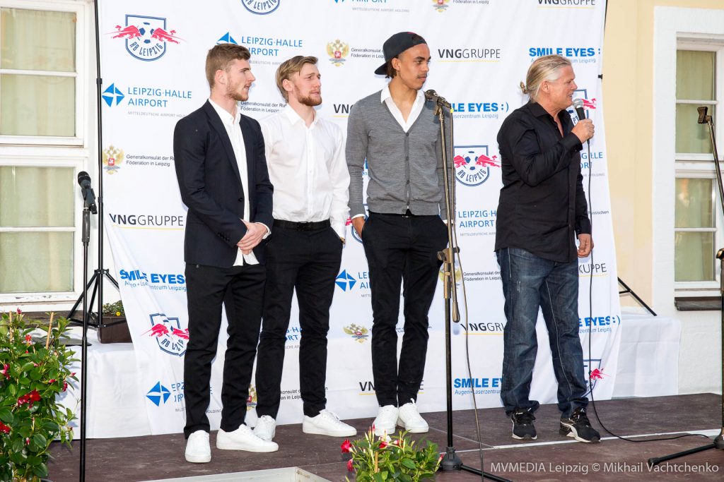 Exklusiv Video. Vertreter der Redaktion russischsprachiger Zeitschrift „Most“ waren unter den Teilnehmern dieser Veranstaltung (Zeugen dieses Ereignisses). Redakteure der Zeitschrift überraschten die Spier mit Souvenirbällen für die kommende Fußball-WM, welche die Spieler von RB Leipzig mit Freuden/Vergnügen mit Ihren Autogrammen versahen.