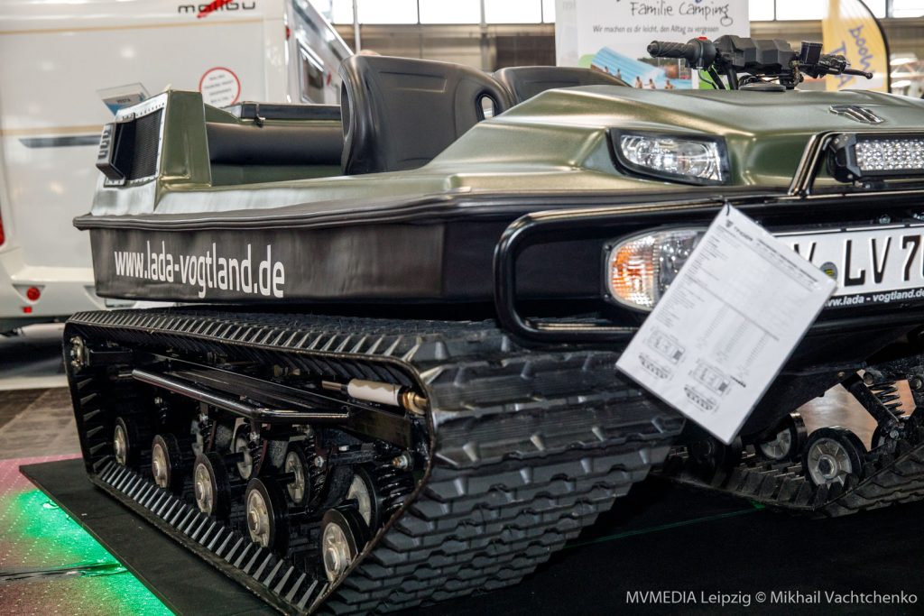 Vom 22.- 26. November fand in Leipzig die Touristik & Caravan Reisemesse statt, auf der man die kalten Außentemperaturen vergessen konnte und sich an die unterschiedlichsten Reiseziele versetzten konnte. Insgesamt 600 Aussteller, aus verschiedenen Ländern, präsentierten die neusten Trends und Reiseangebote auf der Messe. In der Halle 3 gab es einen vielfältigen Caravaning- und Campingbereich, wobei Wohnmobile unterschiedlicher Preiskategorien zur Anschauung verfügbar waren. Ein Exponat war besonders interessant: ein Kettenfahrzeug des bekannten russischen Autoherstellers LADA. Bei diesem Fahrzeug handelt es sich um ein Serienprodukt und es wird vor allem in schwer fahrbaren Regionen, wie in den Bergen verwendet, aber auch auf Straßen ist es zugelassen. Verwendet werden sie mittlerweile in Österreich und in der Schweiz.