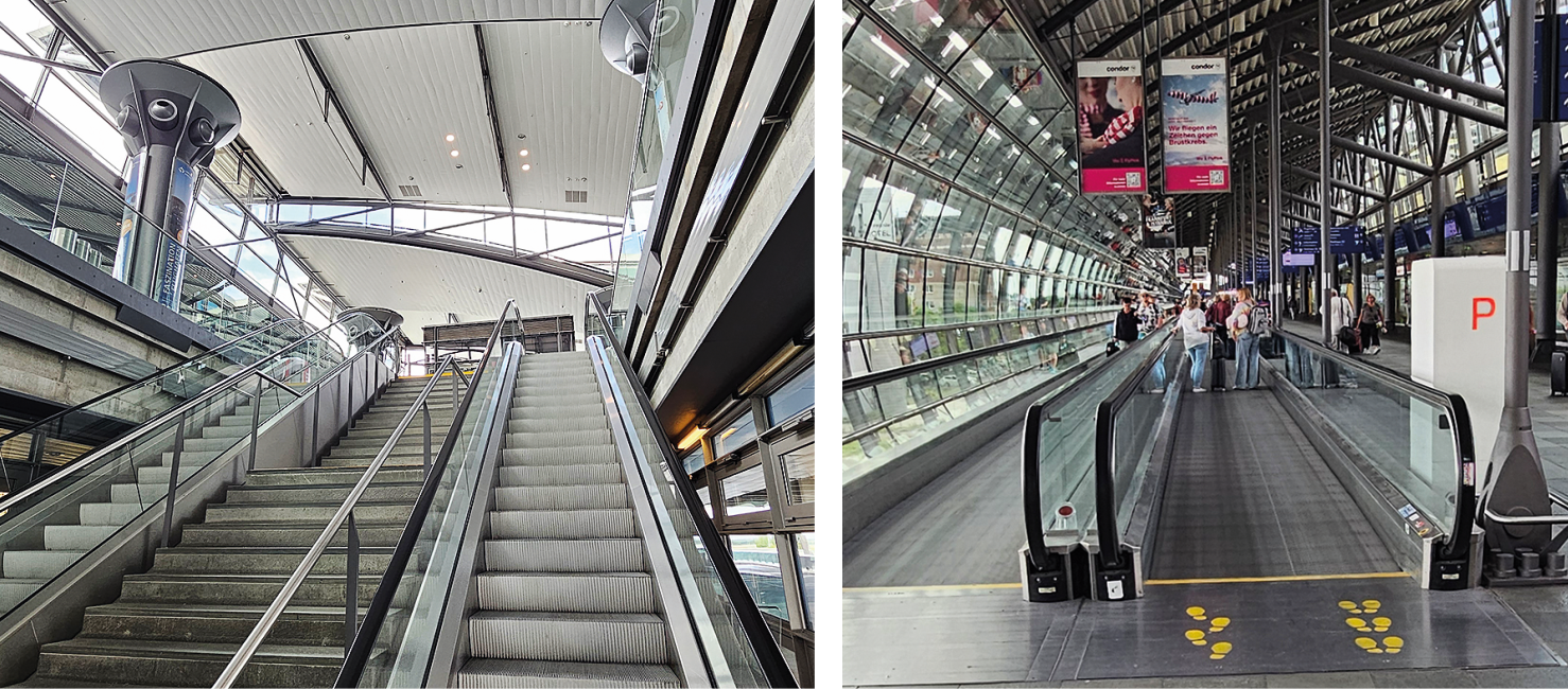 - Железнодорожная станция прямо под терминалом, соединённая с сетью немецких ICE и региональных поездов.