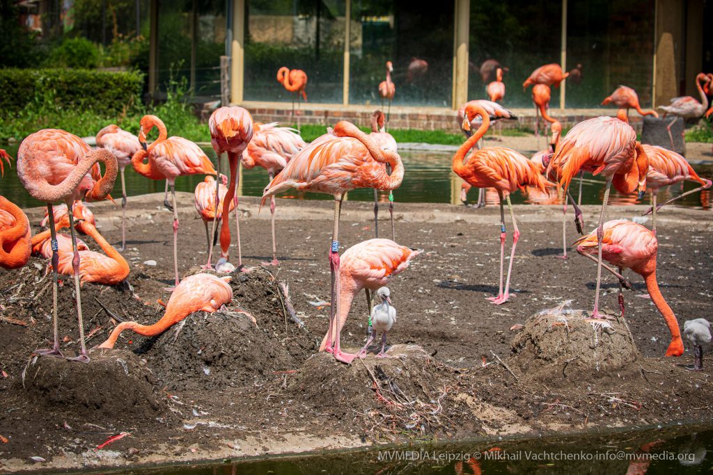 В зоопарке проживает более двух тысяч животных 334-х видов. При входе в парк сразу бросаются в глаза красивые и ухоженные вольеры. Мы попали в зоопарк во время кормления. С одной стороны, это хорошо, можно увидеть, как животные питаются, с другой – не удалось увидеть всех хищных животных. Загоны и смотровые площадки сделаны так, чтобы любителям природы удобно было наблюдать за животными. В отделе парка, посвященном Африке, мы перемещаемся в саванну, где пасутся зебры и статные жирафы. На табличках надпись: недавно родились зебра и жираф, условия содержания приближены к природным, и животные чувствуют себя как на воле. Огромный вольер со слонами и львами, экзотическими птицами, к которым мы подошли на крики. Это оказались розовые фламинго. Всмотревшись, мы увидели, что птицы сидели на гнездах, а рядом неуклюже топали недавно вылупившиеся серенькие, пушистенькие птенцы, которые делали свои первые шаги.