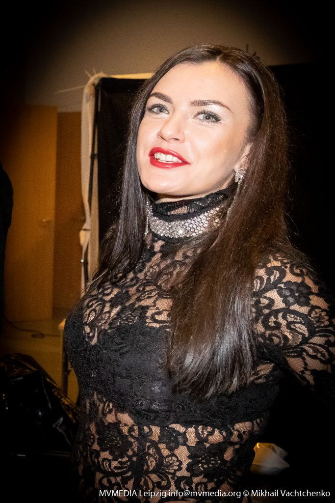 Зрители очень тепло принимали актеров, в заключении под бурные аплодисменты стоя приветствовали, дарили цветы, а самой юной зрительнице, которая преподнесла цветы «Воланду», достался поцелуй от актера Игоря Хализова. Ну а мне удалось сфотографироваться после спектакля с великолепной Геллой – Натальей Гончаровой. А под занавес, вашему вниманию эксклюзивное интервью с Любовью Толкалиной.