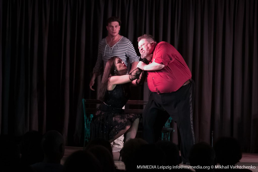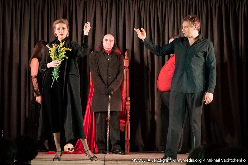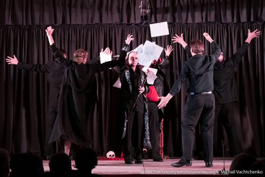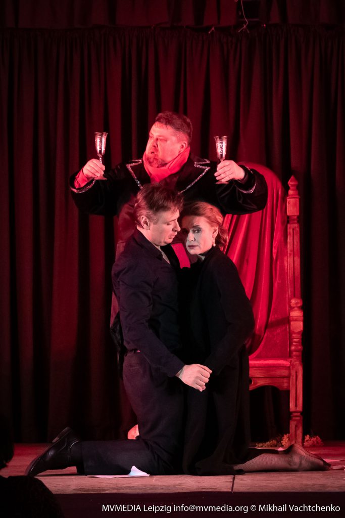 Самый мистический спектакль современности «Мастер и Маргарита» Михаила Булгакова, по постановке В. Беляковича, которая на протяжении уже нескольких десятилетий радует любителей театрального жанра, наконец-то смогли оценить и зрители нашего города. На обоих представлениях – был аншлаг, лейпцигский зритель соскучился по высококачественным постановкам, да и еще с таким сильным актерским составом. Роль Маргариты сыграла известная актриса театра и кино Любовь Толкалина, а роль Мастера – исполнил Сергей Поздняков, хочется отметить, что весь актерский состав, показал прекрасную игру, на протяжении всего спектакля эмоции переполняли зрителей. Ты словно сам оказываешься внутри событий и погружаешься в таинственную атмосферу увиденного. Мы наблюдали историю любви, смешные, трагические, обаятельные образы, вышедшие из-под пера маэстро – Михаила Булгакова. Спектакль очень легко смотрелся, два с половиной часа пролетели, как одно мгновенье. Особо хочется отметить, что спектакль изобилует как юмором самого романа, так и блистательной комедийной игрой актеров, великолепная хореография, тоже достойна особого внимания. Моментами мне казалось, что я пришел на мюзикл, настолько было все отточено. Создатели спектакля сознательно перемешали ряд разных образов поручив сыграть одним и тем же актерам сразу по несколько ролей с перевоплощениями. Точным попаданием стал выбор главной героини на роль Маргариты, высокая, статная блондинка, с прекрасной прической и длинными ногами, завораживает тебя, на протяжении всего спектакля, я не мог оторвать глаз от Любови Толкалиной. Впрочем, именно в такую женщину и было суждено влюбиться Мастеру!