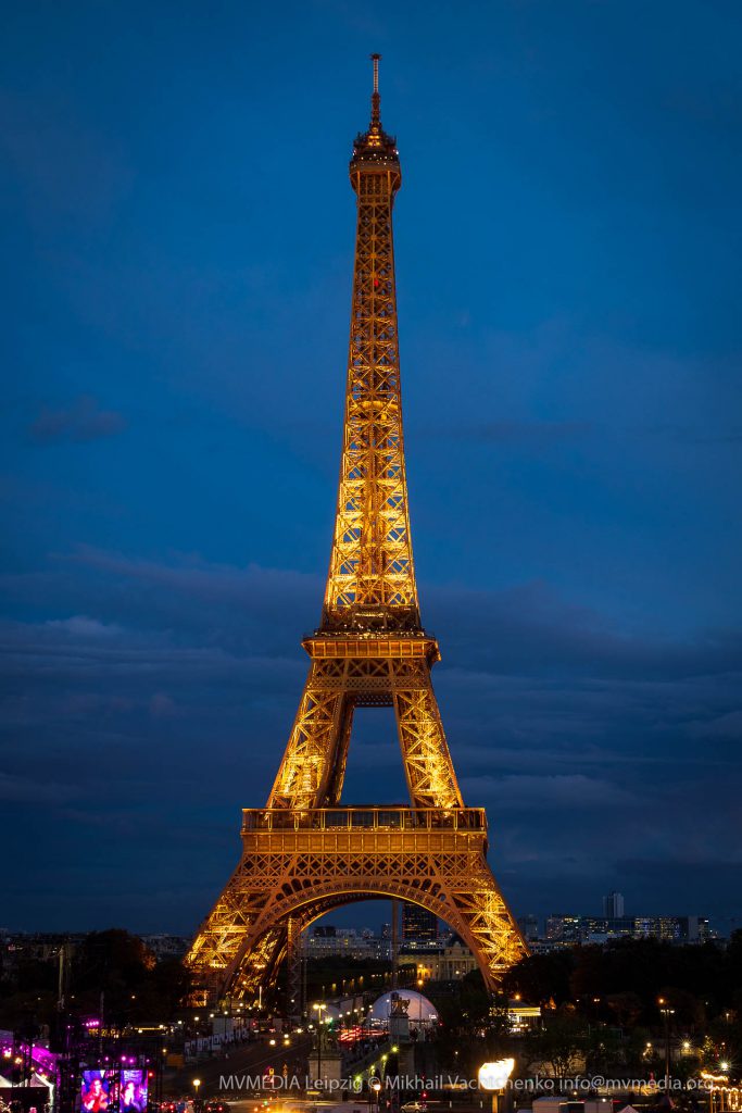 Наше путешествие по Парижу подошло, к сожалению, к концу. Но на десерт мы увидели иллюминацию Эйфелевой башни. В вечернее время один раз в час на пять минут на башне зажигаются тысячи огней. За этим действом лучше наблюдать издалека, чтобы видеть башню во всей ее красе. Темнело, и вот чудо – в вечерней тьме Эйфелева башня стала золотой. Затем на несколько секунд полностью погас свет, и она вновь засверкала тысячами огней. Ради одного этого момента уже стоило приехать в Париж. Приехать, увидеть и полюбить навсегда.