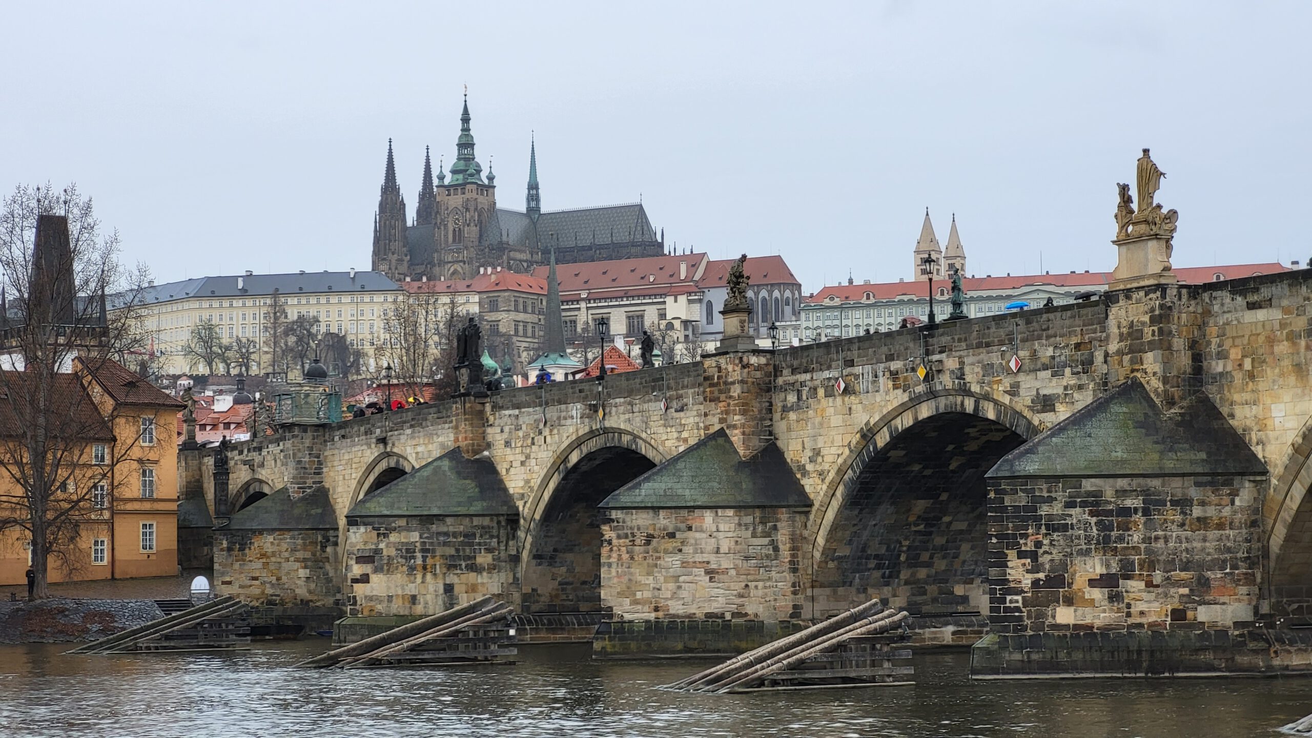 Кстати, о Карловом мосте: легенда гласит, что если загадать желание, коснувшись статуи Яна Непомуцкого, оно обязательно сбудется. Правда, от количества туристов, прикасающихся к статуе, бронза уже блестит как золото — видимо, желаний накопилось действительно много!
