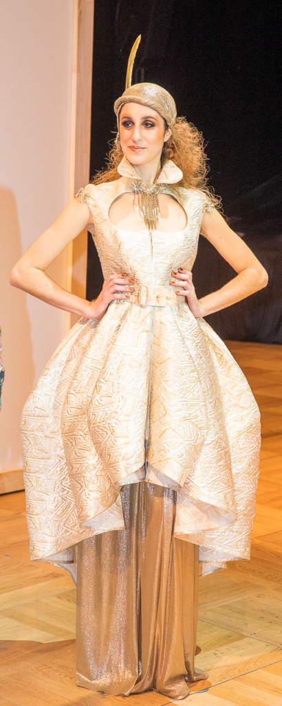 Ежегодно оперный бал проводит показ мод молодых дизайнеров. Для них это отличный шанс сделать шаг на пути к успеху и обзавестись новыми контактами. Больше всего впечатлил жюри Дэнни Раунер из Лейпцига с золотистым платьем, верхним кроем напоминающим дирндль (баварский и австрийский женский национальный костюм).