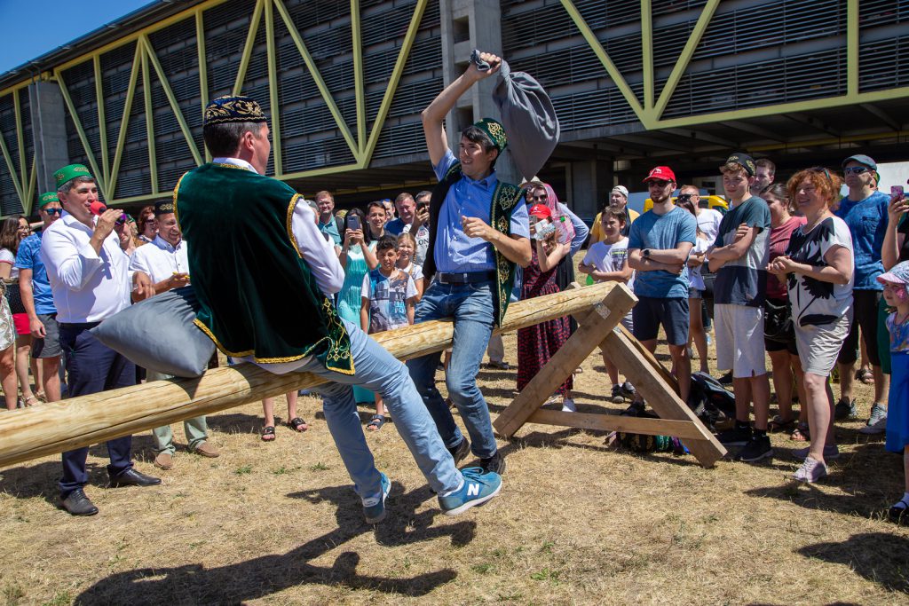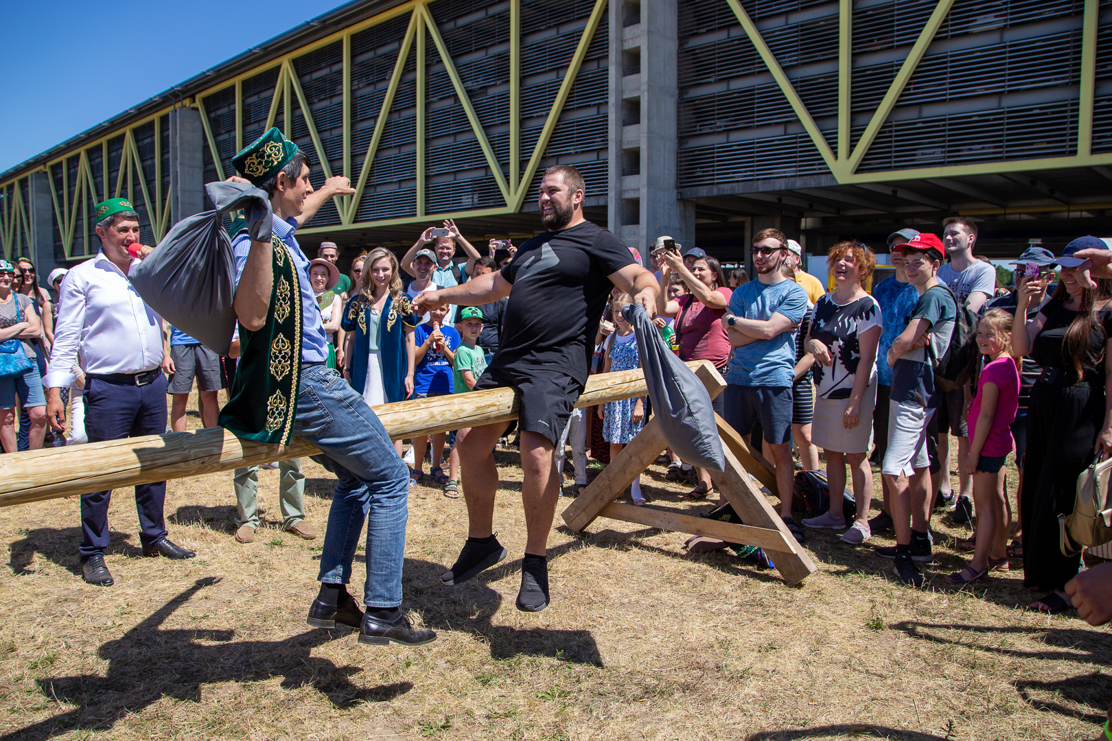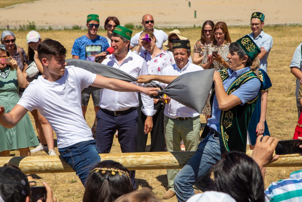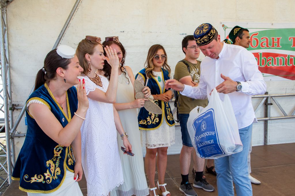 Сабантуй считается одной из самых важных дат культурного календаря татар. Как правило этот праздник, который олицетворяет завершение полевых посевных работ, отмечают весной или в начале лета. Не обошёл свои истинные традиции и Сабантуй, празднуемый в нашем городе. Невозможно было оторвать глаз от колоритных нарядов и причудливых музыкальных инструментов, заслуженных артистов Татарстана, а также от угощений, приготовленных по оригинальным рецептам. С удовольствием попробовав плов и эчпочмак, мы отправились на игровую зону площадки, где уже во всю царила атмосфера соревнования. Гости от мала до велика колотили друг друга мешками с соломой, бегали с ведрами, заполненными водой, бегали с ложкой во рту, в которой находится куриное яйцо, стреляли из лука и поднимали двухпудовые гири. Участники были награждены щедрыми призами, а мы – прекрасным настроением. Для маленьких гостей была организована игровая зона с надувным городком. Несмотря на солнцепёк, праздник не уставал радовать пришедших, все рано или поздно пускались в пляс, подхватывая народные музыкальные мотивы. Искрящаяся жизнерадостность, свобода, талант и смекалка этого народа не оставили никого равнодушным и только возбудили интерес к татарской культуре.