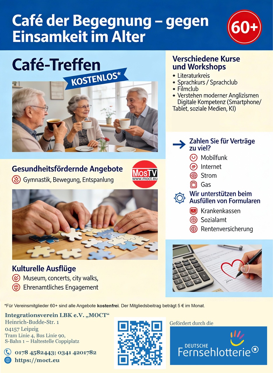 Кафе зустрічей — проти самотності у літньому віці Інформація, Корисна інформація, Лейпциг, Саксонія 6. February 20266. February 2026 Denys Kolesnyk