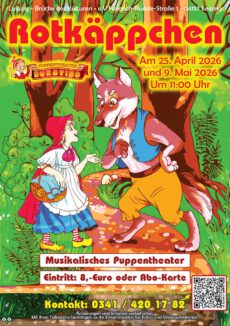 Дорогі діти, дорогі батьки! 25 квітня та 9 травня на нашій ляльковій сцені буде показано казку «Червона Шапочка». 25.04 та 09.05.2026 обидві вистави «Червона Шапочка» відбудуться в нашому ляльковому театрі «Буратіно» німецькою мовою. Як завжди, о 11:00 ляльковий театр «Буратіно» запрошує вас на виставу. Крім того, 16 травня 2026 року відбудеться ще одна вистава «Червоної […]