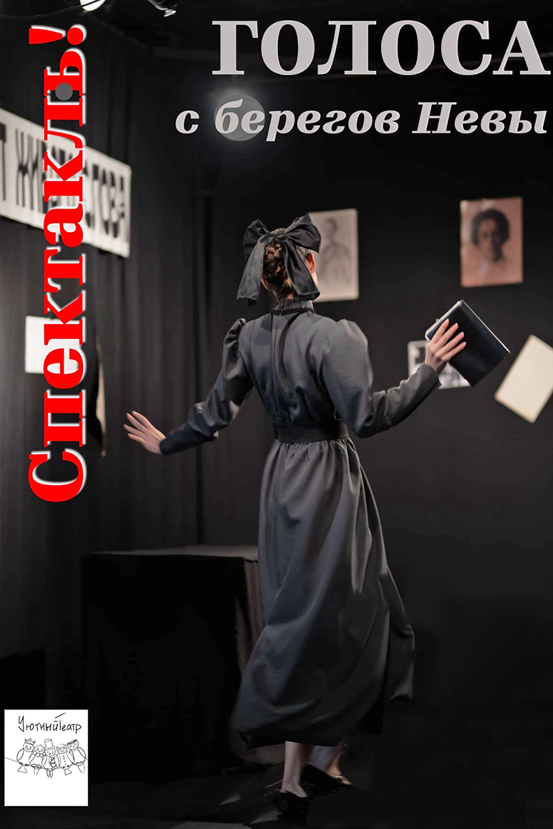 Спектакль "Голоса с берегов Невы" представляет собой инсценировку мемуаров Ирины Одоевцевой, линии ее взаимоотношений с Николаем Гумилевым. Основной ход спектакля состоит в том что на сцене присутствуют одновременно пожилая и молодая Одоевцева, а реплики Гумилева, а также эпизодических персонажей записаны в саундтрек и заранее смикшированы с музыкальным рядом. Таким образом, создаётся эффект воспоминаний разной яркости и подробности - мысли, ощущения, эмоции самой героини представлены на сцене, окружающий мир - менее овеществлен и более размыт.