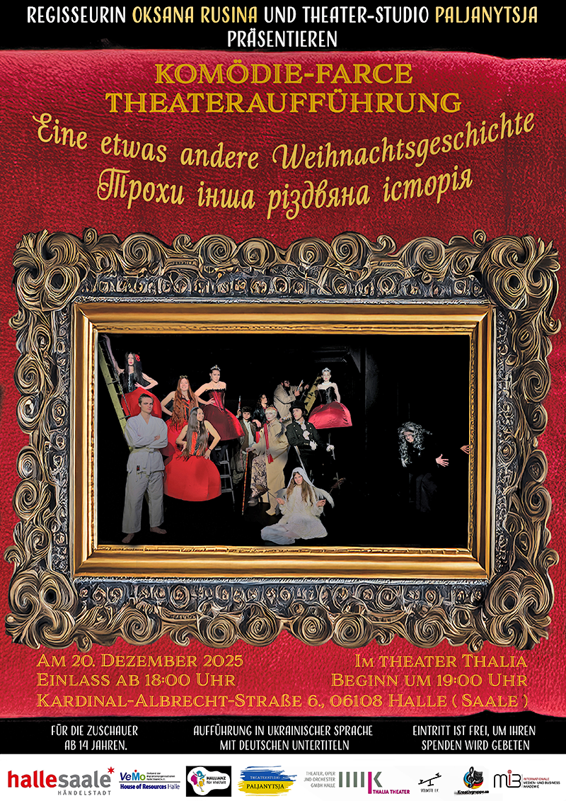 Вистава українською мовою з німецькими субтитрами на великому екрані.